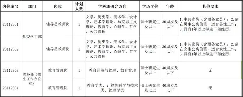 具体招聘岗位见《2023年天津美术学院第三批公开招聘计划表(硕士岗位工作人员)》(见附件)。