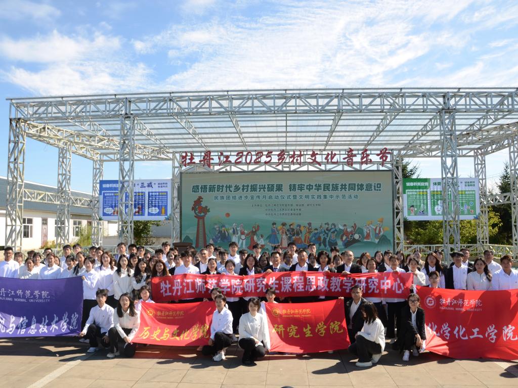 为深化民族团结进步教育,筑牢中华民族共同体意识,2025年9月17日,牡丹江师范学院历史与文化学院联合校宣传统战部、研究生学院,携手西安区委宣传部、统战部、政法委、司法局等多部门,于牡丹江市西安区海南朝鲜族乡中兴村广场共同举办“感悟新时代乡村振兴硕果 铸牢中华民族共同体意识”民族团结进步宣传月启动仪式暨文明实践集中示范活动。西安区委常委、组织部部长尹涛、牡丹江师范学院宣传统战部副部长王娇佼、历史与文化学院党委书记王立国、化学化工学院党委书记邵艳秋、牡丹江人民空军摇篮纪念馆馆长李仁敏等出席活动。历史与文化学院部分师生代表、西安区相关单位干部、海南乡群众代表及阿妈妮读报组成员百余人参加活动,活动由历史与文化学院党委书记王立国主持。