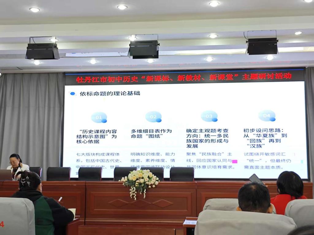 本次会议研讨活动总共分为三部分进行,依次为徐莹《2025龙东中考历史试题分析》,孙莹《2025龙东地区中考命题记》,李晓翔《2025龙东中考历史相关数据分析及新中考方向》《新课标、新教材研读与实践》《本年度教研工作安排》。