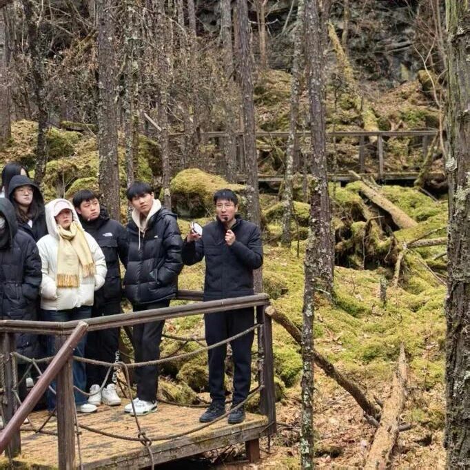 实习期间,师生围绕吊水楼瀑布、镜泊湖峡谷、火山口地下森林及熔岩隧道四大核心区域开展调研:在吊水楼瀑布观察玄武岩的柱状节理,探究镜泊湖湖盆的形成原因;在镜泊湖峡谷观察峡谷的形态特征,辨析其形成的主要外部营力,观察河谷的谷底的微地貌,分析其形成的原因;在火山口地下森林了解火山喷发历史、类型和目前火山口的地理环境,观察红松林生态适应特征并记录植被分布规律;在熔岩隧道感受溶洞内部环境,探究其形成演化过程和形成的微地貌类型,记录区域内森林沼泽的地理环境,分析其形成条件。