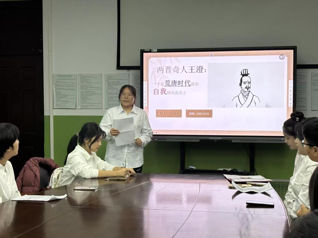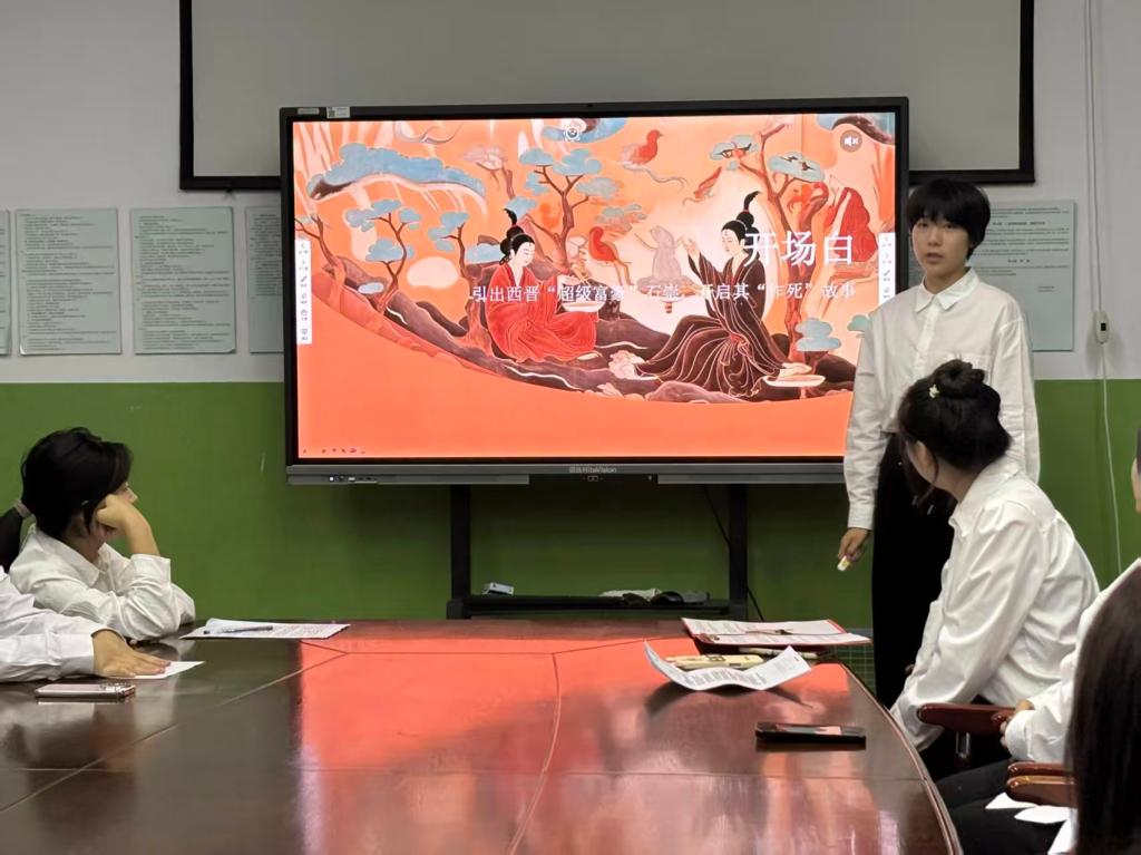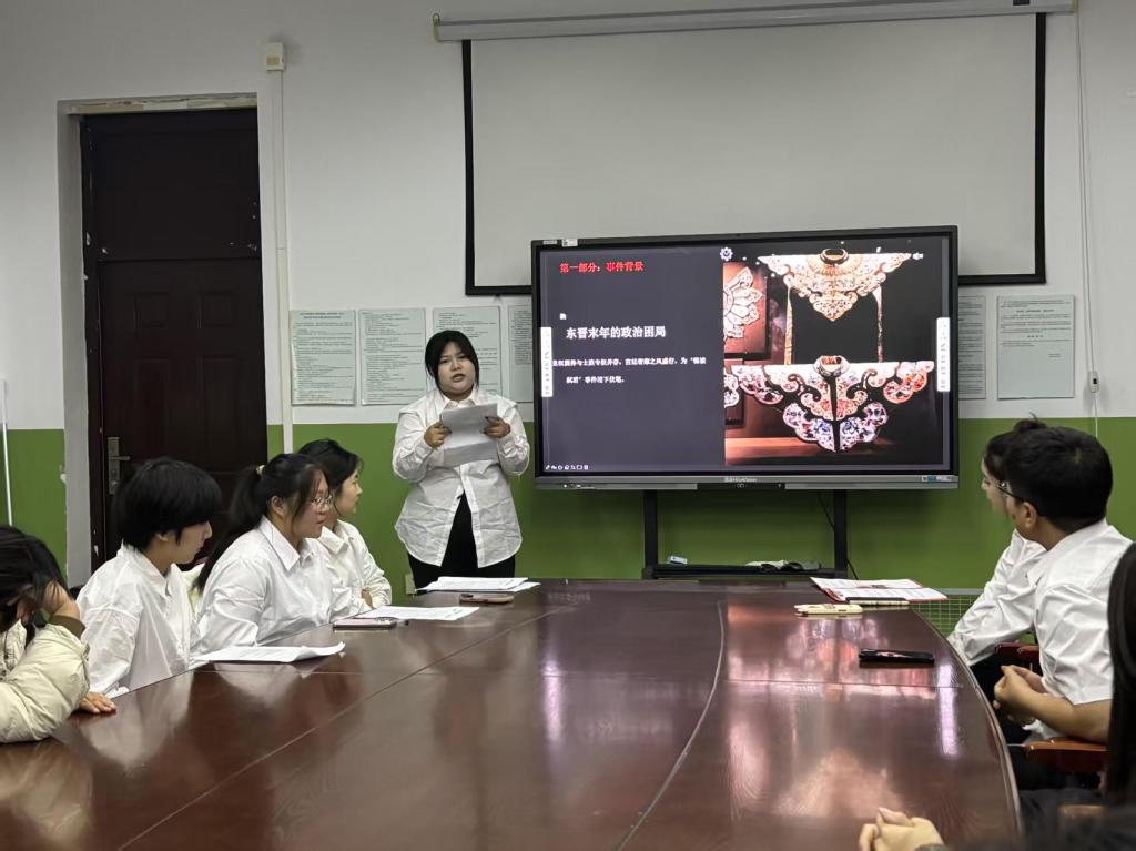 本次活动由杨雪同学主持,分别由崔安琪、范馨文、王瑞希、杨浩、周佳琦五位同学进行分享。首先,崔安琪同学带领我们见证了一场文学的逆袭,让我们感悟了 “洛阳纸贵” 背后的传奇;接着,范馨文同学揭示了 “锦被藏君魂” 的宫廷秘闻,让我们窥见了权力游戏中的残酷;王瑞希同学则是剖析了王澄 “名士风流与帝国悲歌” 的人生,让我们体会到个人选择与时代环境的紧密联系;接下来,杨浩同学深挖了 “司马衷登基背后” 的政治博弈,让我们看到了一位皇帝亲手将王朝推向万劫不复的深渊;最后,周佳琦同学刻画了 “炫富狂魔石崇” 的浮沉人生,让我们明白了一个王朝的沉溺浮华,终将使它走向衰败的道理。各位同学的分享共同拼凑出了西晋王朝 “其兴也勃焉,其亡也忽焉” 的完整图景。