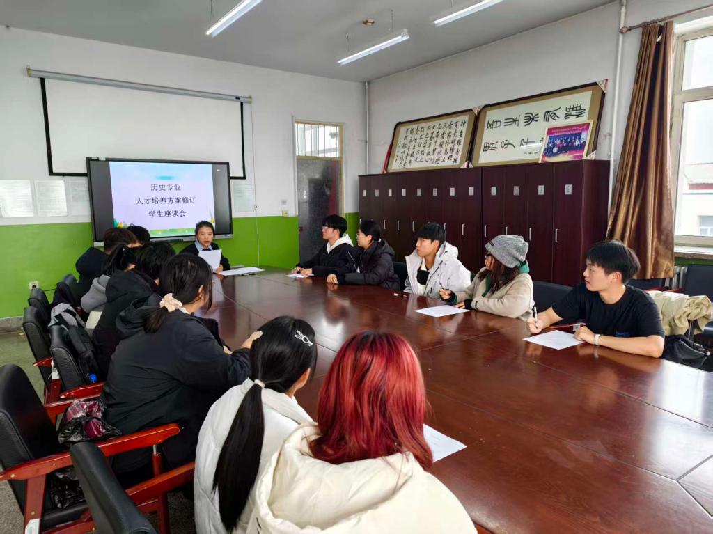 为扎实推进2027版本科人才培养方案修订工作,充分吸纳学生意见建议,提升方案科学性与适配性,期中教学检查期间,历史与文化学院历史学专业2027版培养方案修订学生座谈会顺利召开。会议由徐鸿嘉老师主持,2023级、2024级历史学专业共15名学生代表参会。