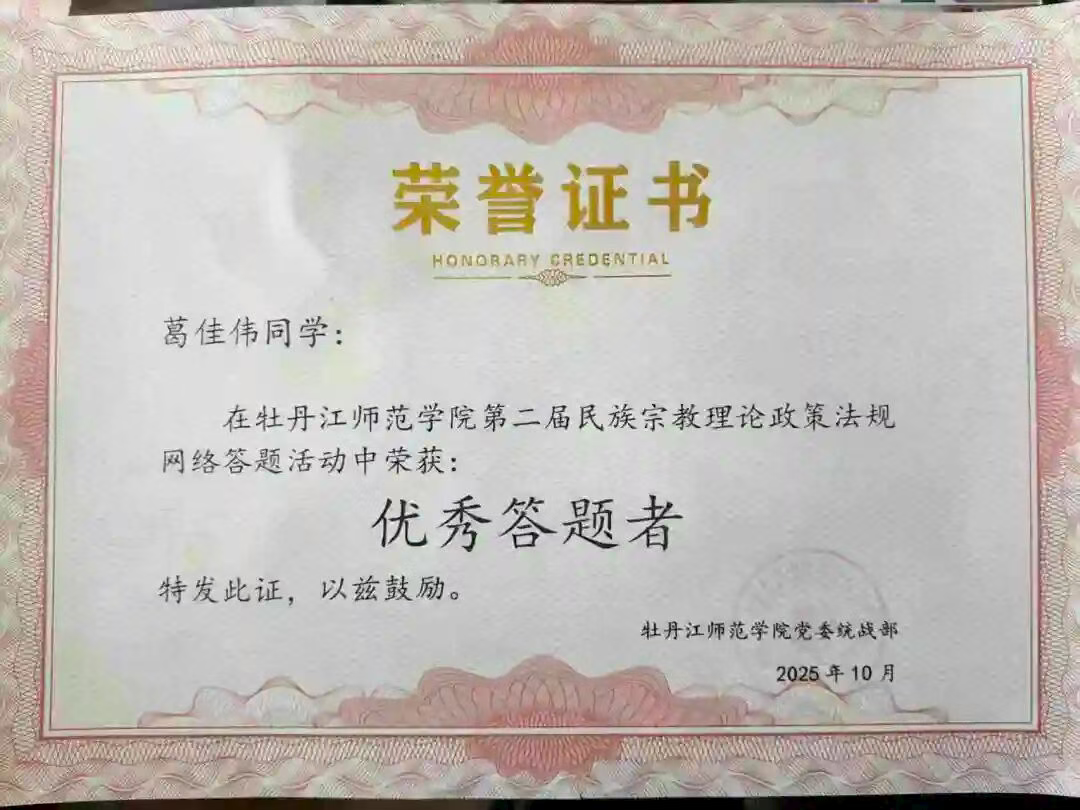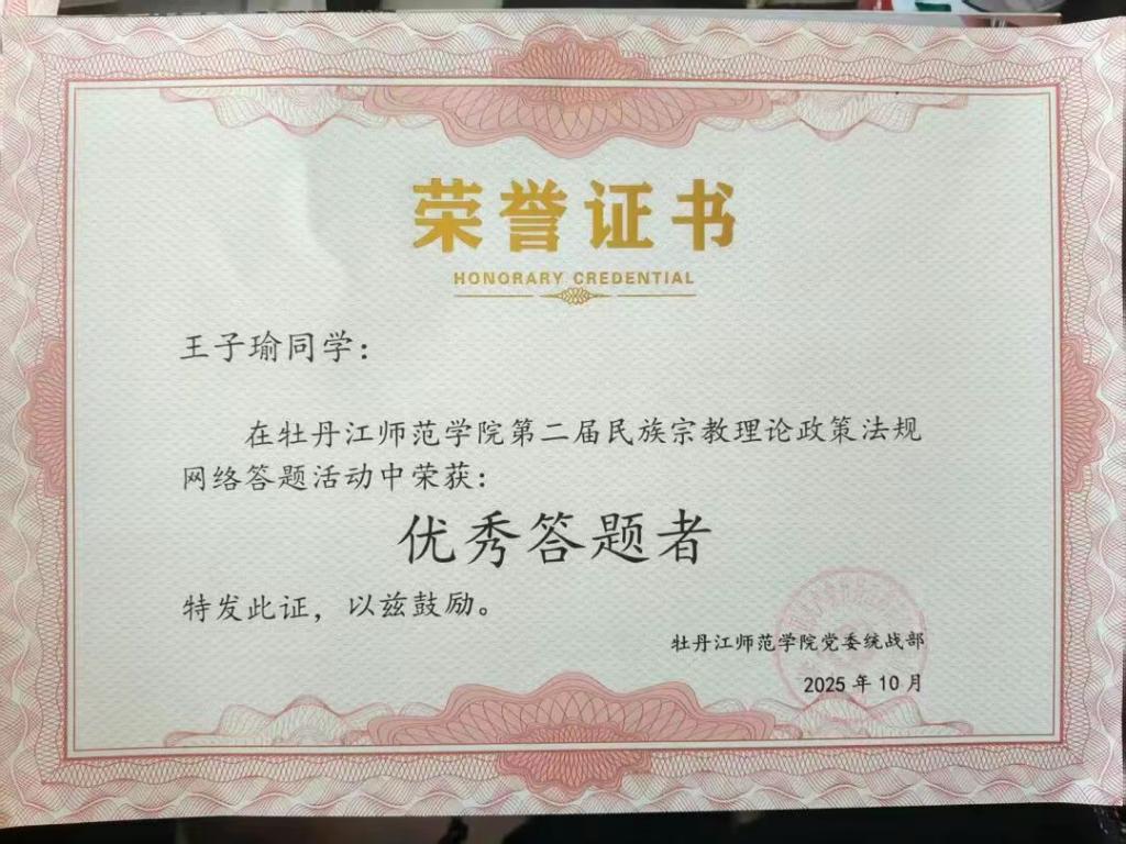 为深入贯彻习近平总书记关于加强和改进民族工作的重要思想,扎实推进民族宗教政策法规知识的学习与宣传,进一步铸牢中华民族共同体意识,我校党委统战部成功举办了第二届民族宗教理论政策法规网络知识竞答活动。在此次活动中,我院积极组织师生参与,凭借出色的组织协调能力,获得优秀组织奖,多名学子在此次知识竞答活动中喜获“优秀答题者”荣誉称号。