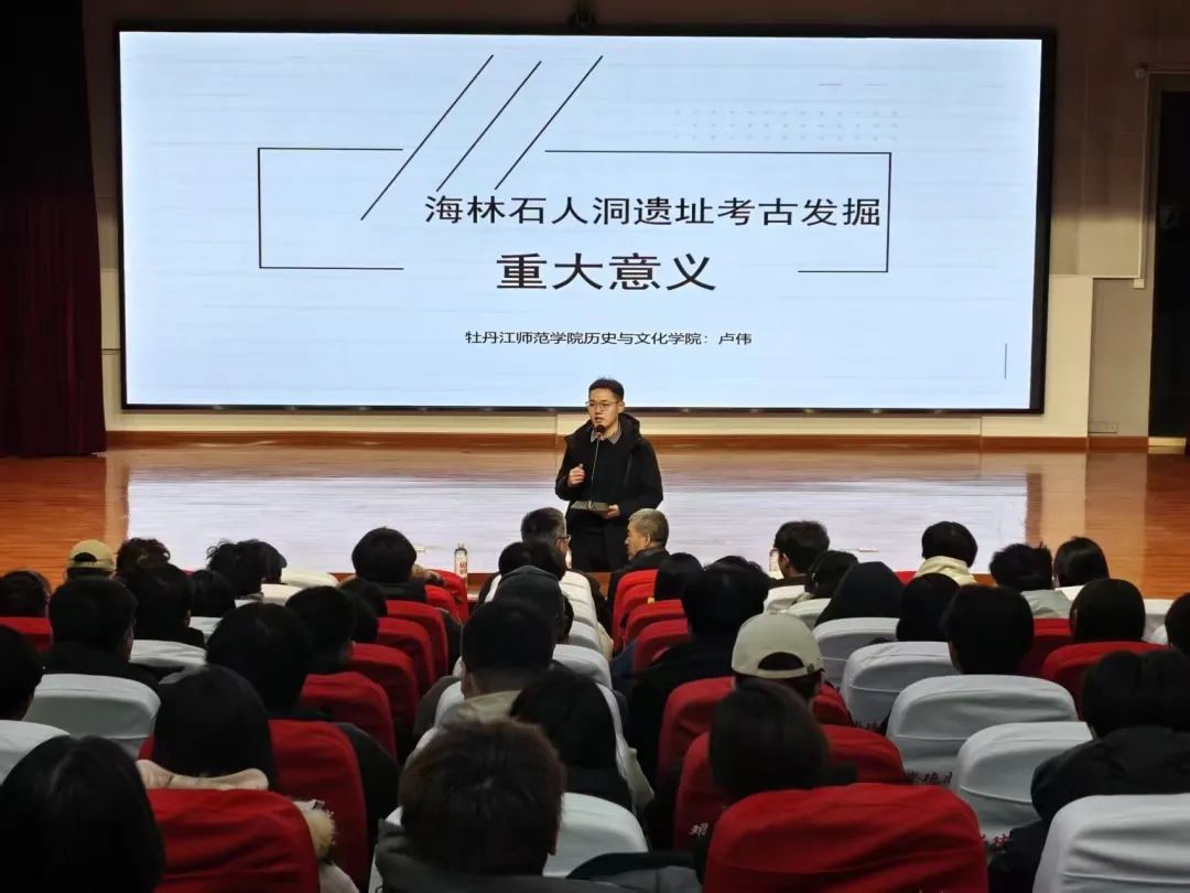 分享会开始,院长卢伟围绕着海林石人洞考古发掘的重要意义展开讲述,并对参与海林石人洞考古发倔和参与木兰抗联遗址发掘的六名同学不畏艰险、深耕田野的实践精神表示肯定,鼓励大家以实践为桥,探索历史未知。