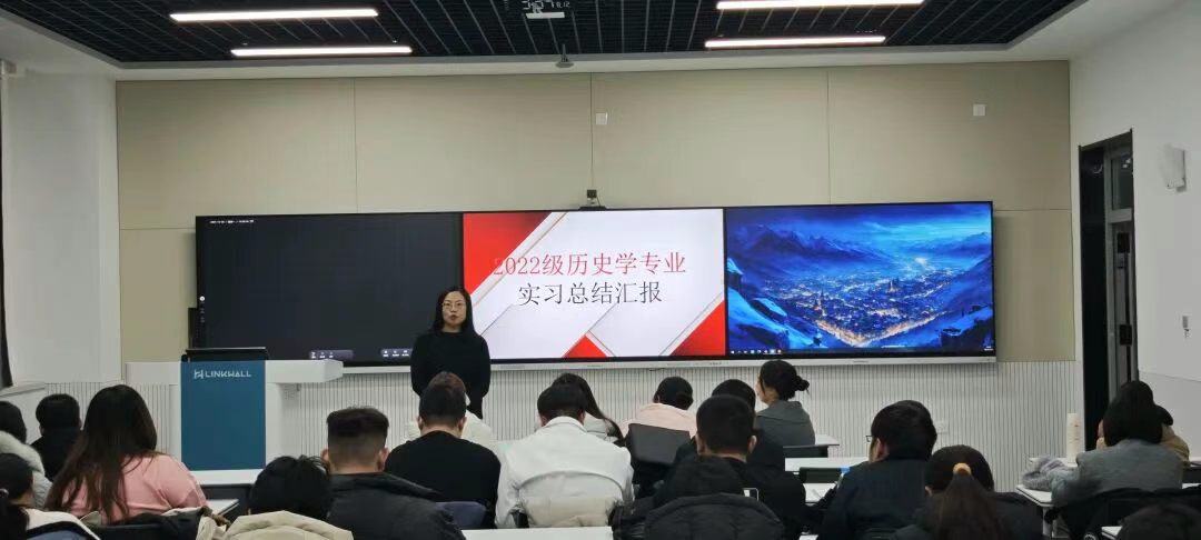 汇报开始前,杜品副院长进行讲话。她首先祝贺同学们顺利,高效,圆满的完成了各项实习任务,展现了我院历史学习的优良样貌与风范。她指出:经过几个月的学习,同学们在精神面貌上有了巨大的提升。同学们不仅将所学的理论知识与实践相结合,还深入了解了教育教学的实际情况,提高了自身的教育教学能力,为以后步入教学岗位打下了坚实的基础。
