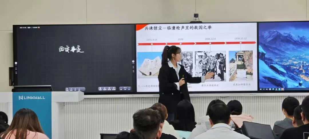 李思宇同学以八年级上册历史《西安事变》这一子目为展示内容,通过说课和讲课两个部分,围绕教材分析、学情把握、教学目标及过程展开分享。课程紧扣课标要求,巧用时间轴梳理历史脉络,结合史料解析与情境教学,清晰呈现西安事变的起因、经过及和平解决的意义,凸显中国共产党在民族危亡之际的担当。展示中,她将理论知识融入教学实践,教法灵活、逻辑清晰,充分展现了扎实的专业功底与良好的教学素养。