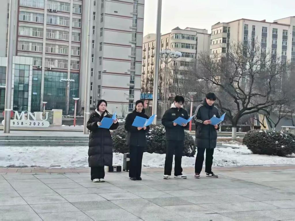 为全面贯彻落实党的二十届四中全会精神,弘扬革命文化,传承红色基因,深切缅怀南京大屠杀死难同胞和革命先烈,引导学生铭记历史、珍视和平、坚定理想信念。历史与文化学院于2025年12月15日在时光广场举行“铭记民族之殇 传承红色初心”主题升旗仪式。本次升旗仪式由历史与文化学院2025级学生杨雪主持。