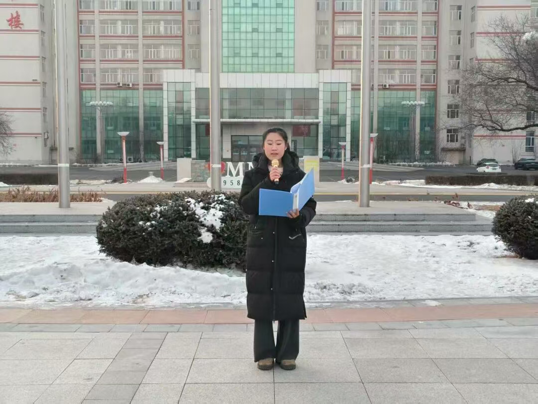 紧接着,历史与文化学院学生党员代表张亚卓在国旗下发言。她面向全体师生,以清晰而坚定的声音,带领大家回溯了那段不容忘却的民族伤痛,并号召新时代青年汲取历史智慧,勇担时代使命。