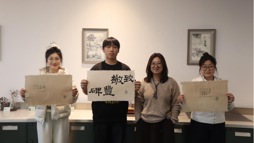 手工纸制作完成后,李欣老师现场演示书法,同学们也切身体验活字印刷技术,开启与中华优秀传统文化跨越时空的对话。博物馆的技术人员结合自身工作经历,为师生们分享了造纸行业的发展趋势与技术创新方向,鼓励同学们努力学习专业知识,未来为传统产业的转型升级贡献力量。
