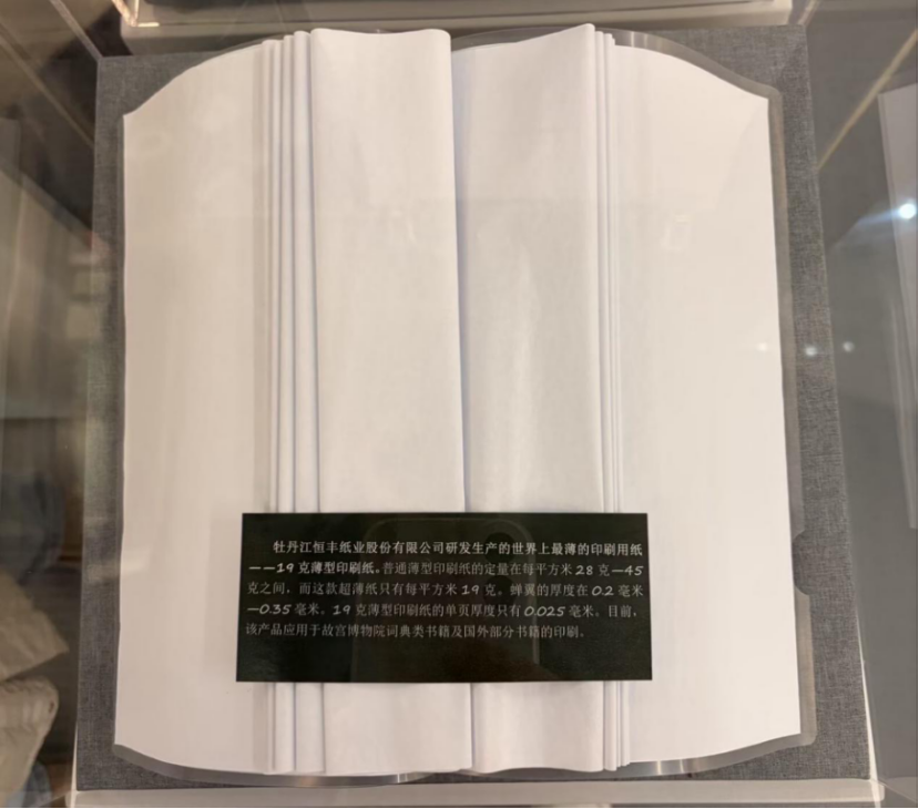 中国造纸博物馆(黑龙江)位于黑龙江省牡丹江市阳明区牡丹江恒丰纸业集团有限责任公司内,2024年该公司成为中国首个明确科学碳目标的特种纸企业。走进中国造纸博物馆,一张张泛黄的古籍纸样、一件件古朴的造纸工具,将师生们带入了造纸术的发展长河。讲解员的细致解说,让大家领略了这项中国古代四大发明之一的独特魅力。我们在博物馆能见到厚度只有0.025毫米相当于普通A4纸1/4的全球最薄印刷纸,它虽薄如蝉翼,却撑起了中国造纸技术的领跑梦,在轻如鸿毛的背后是一场重如千钧的科技攻坚。