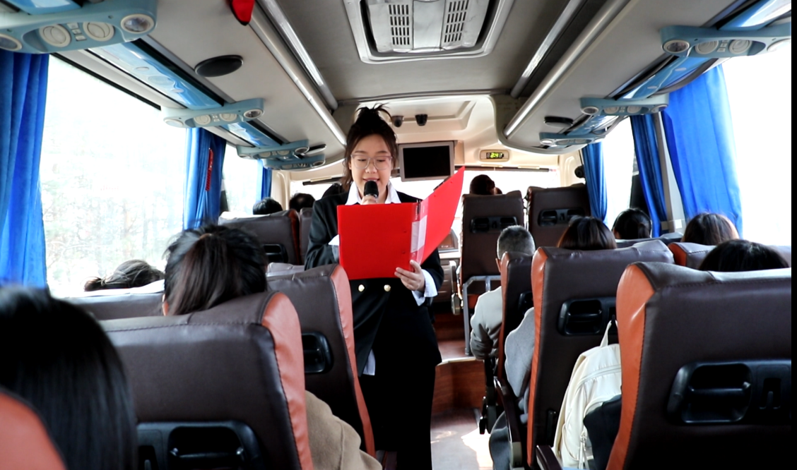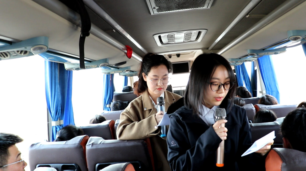 途中研学启新程 红韵随行燃初心,在历史与文化学院唐思琪同学的主持下,一场别样的“行走的红色课堂”同步开启。