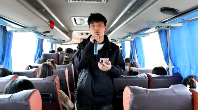 马克思主义学院郭禹彤同学、历史与文化学院刘笑同学合唱《我爱你中国》,以嘹亮歌声诉说对祖国的无限热爱,为途中研学画上温情句号,也让大家对本次研学之旅充满期待。